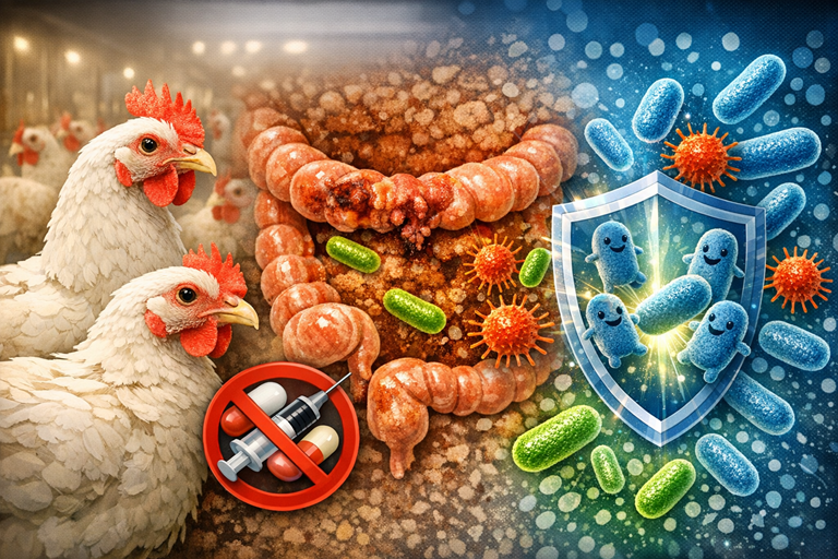 The poultry industry is facing serious challenges due to necrotic enteritis (NE), a bacterial disease that causes severe damage to the intestines and results in billions of dollars in global losses each year. The situation has worsened since the phase-out of in-feed antibiotics, leaving producers with limited options for disease prevention. Traditional treatments often fall short, relying on antibiotics that can lead to resistance or probiotics that yield inconsistent results. This situation highlights the urgent need for safe, effective, and antibiotic-free solutions to protect poultry health and ensure sustainable production.